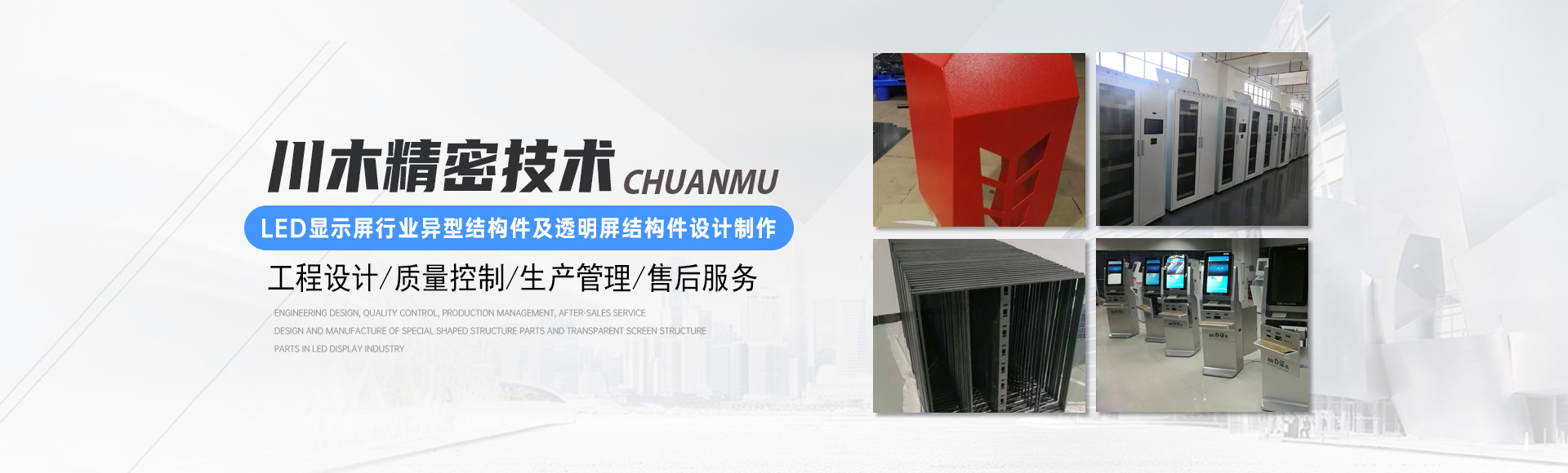 廣東川木精密技術有限公司位于廣東東莞市,公司于2007年成立,2011年3月從深圳遷往東莞,注冊資金500萬,工廠面積6000平方員工50多人,建立了ISO質量管理體系,有成套的數控鈑金設備及噴涂設備,鋁型材數控加工設備,主要從事設備鈑金外殼及精密鈑金零件設計制作,LED顯示屏行業異型結構件及透明屏結構件設計制作,從工程設計,質量控制,生產管理,售后服務,精益求精滿足客戶需求,致力成為你信賴的結構件供應商。